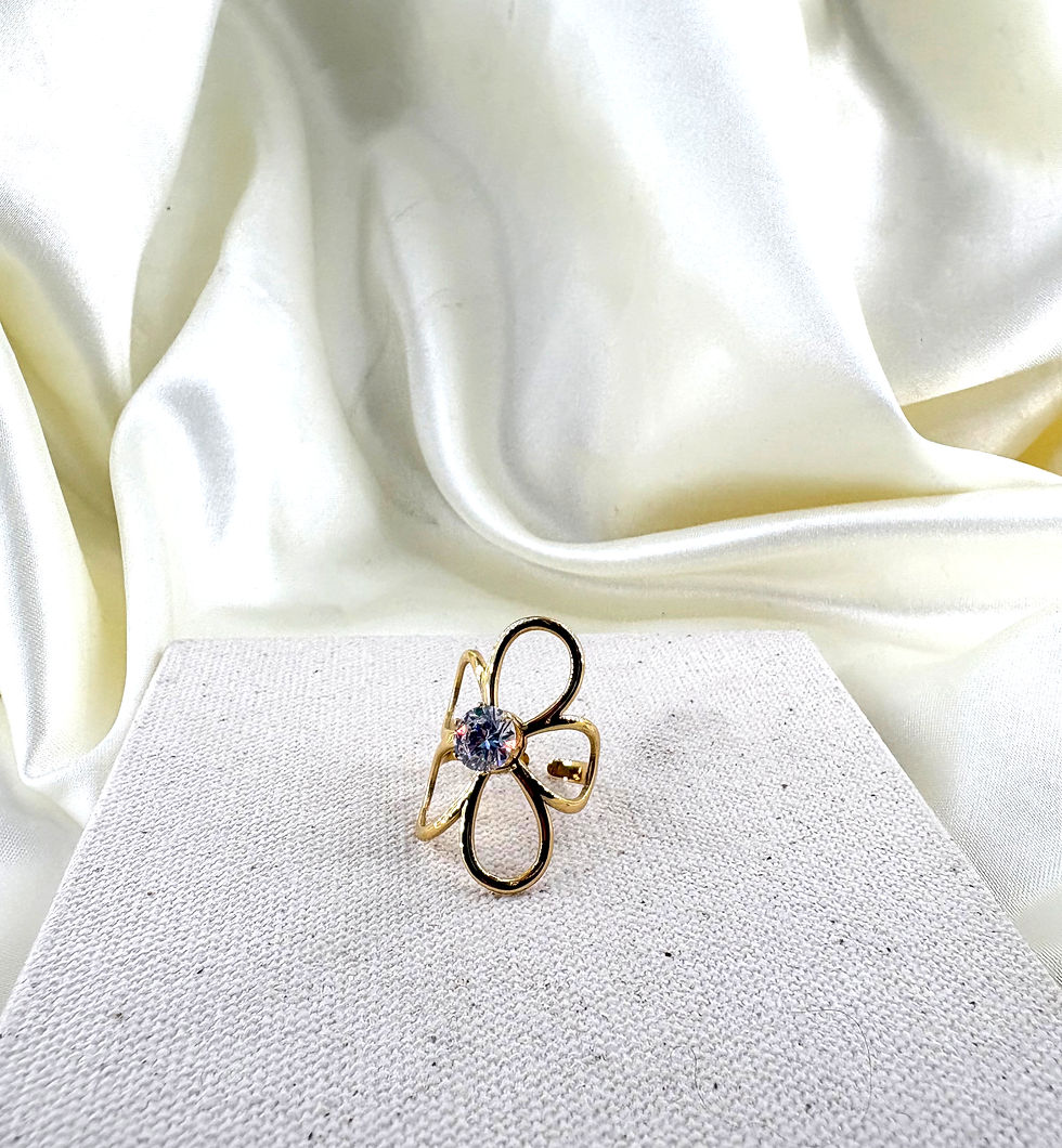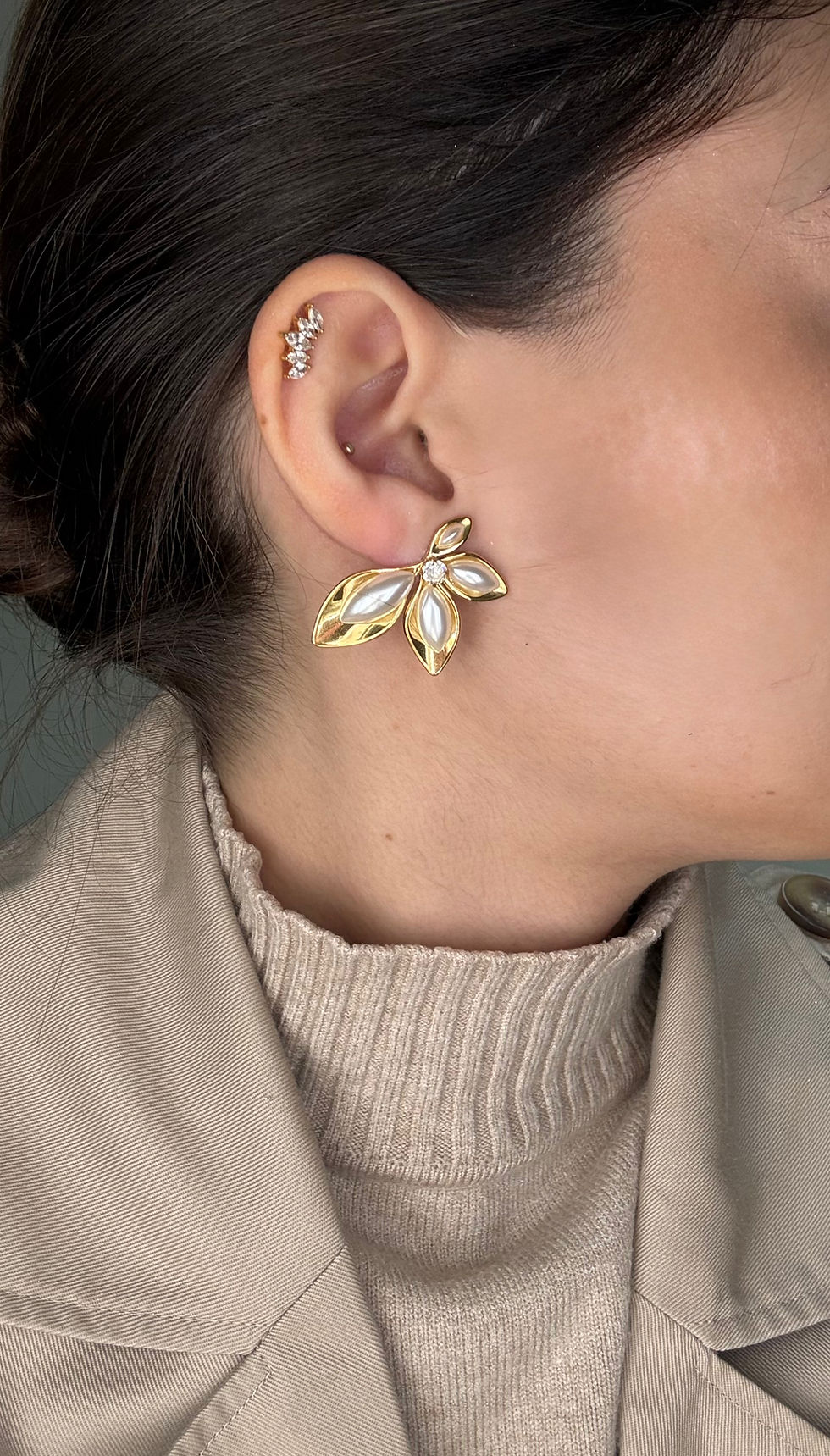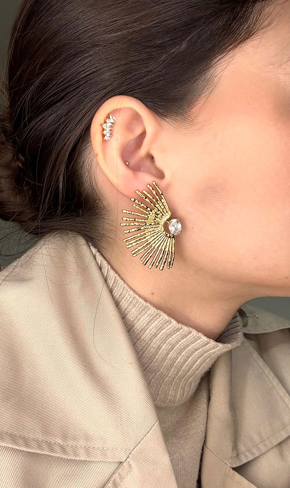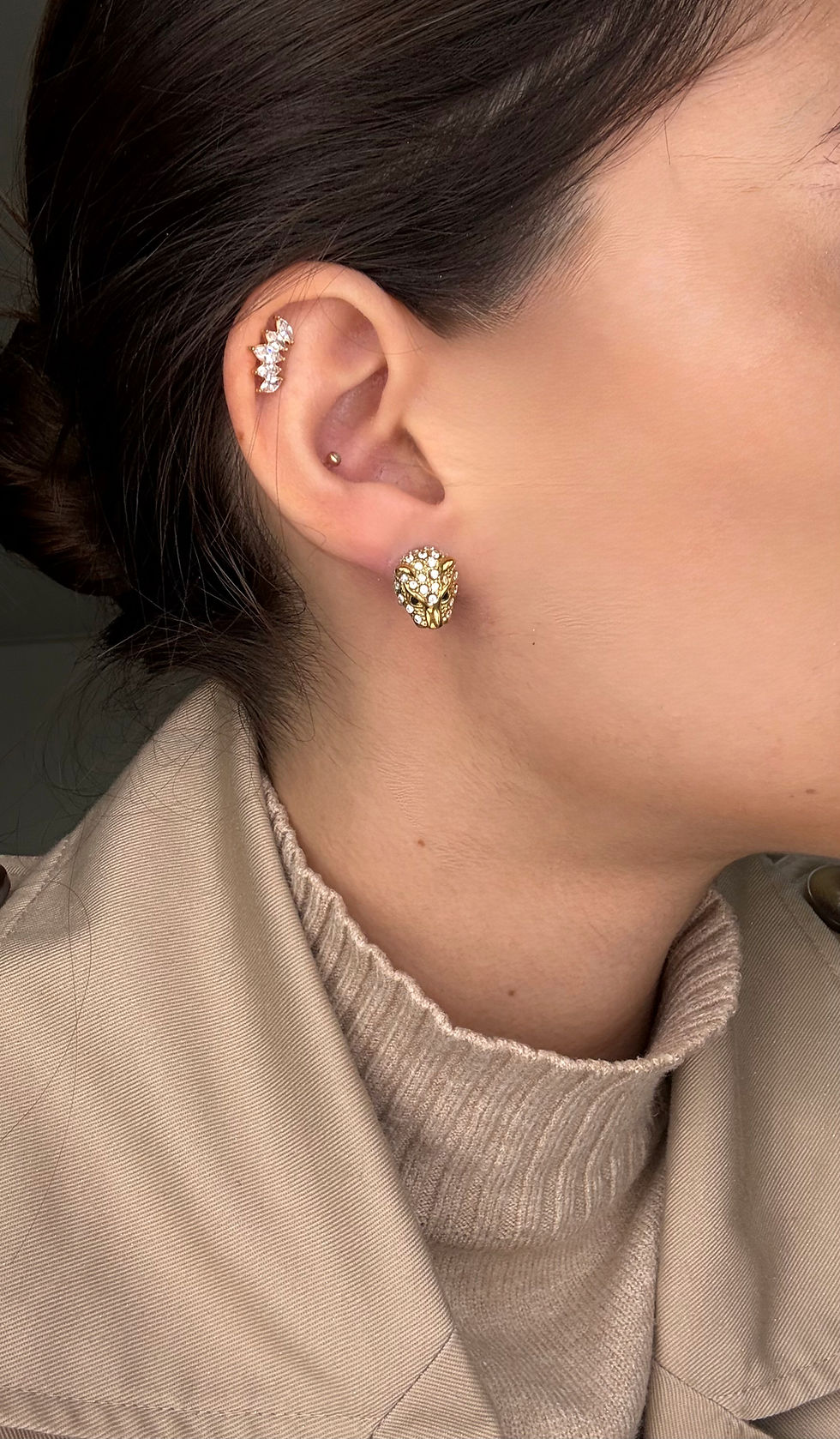 Mono boucle Judie ornée de quatre zircons blancs de différentes dimensions de style grimpant avec manchette dotée d’une charnière à ressort. Fermoir papillon. Vendue à l'unité.